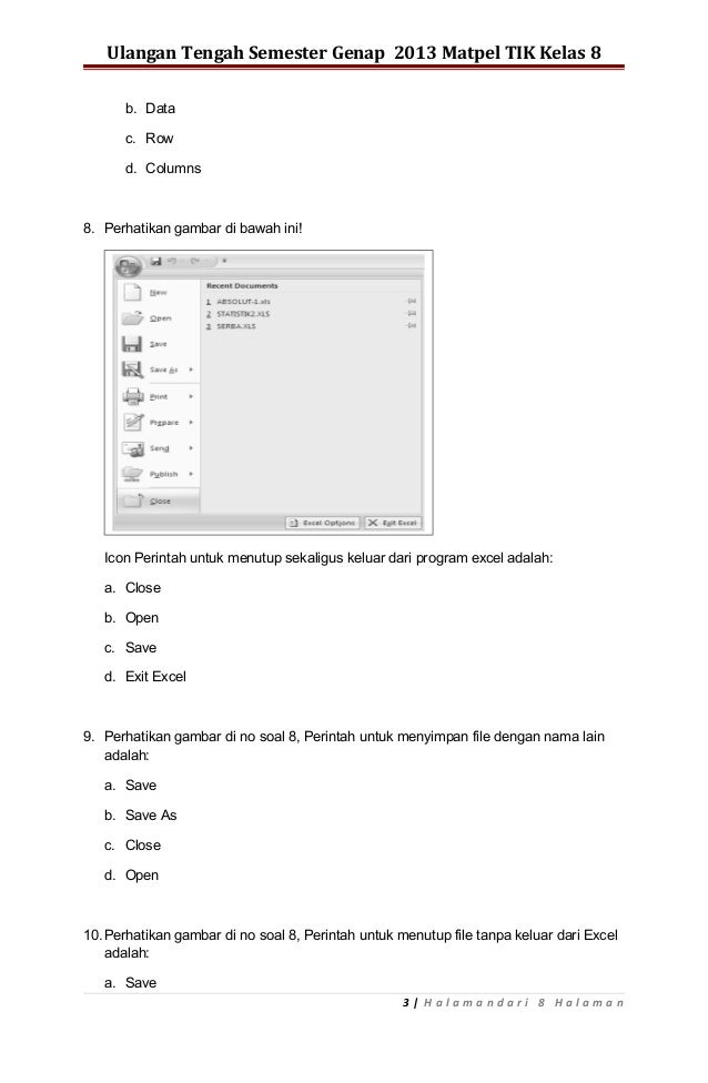 Soal Soal Tik Tentang Microsoft Excel Materi Fungsi Jawabanku Id from cdn.slidesharecdn.com Kisi kisi soal dan kunci jawaban ukk tik smp kelas 8 kurikulum 2006 didno76 com. Pelajaran tik tingkat smp mts. Soal essay microsoft excel 2007 stellarmeetings com from klarwens.web.fc2.com. Cara membuat soal pilihan ganda dengan excel. Jawaban :baris judul merupakan tempat dimana nama file yang sedang dibuka ditampilkan. Contoh soal tik kelas 7 tentang microsoft excel beserta jawabannya.contoh soal tik kelas 8 semester 2 beserta jawabannya esay bab excel 0 comments read now apakah kamu sudah memahami tentang polus dan harga mendapatkan bahasa indonesia sma soal esai statistic and. At we have a team of ma and phd qualified experts working tirelessly to provide high quality customized writing solutions to all your assignments including essays, soal essay tik kelas 11 tentang microsoft excel dan jawabannya term papers, research papers. Demikianlah yang dapat kami sampaikan tentang contoh soal tik kelas 8 semoga bermanfaat.
